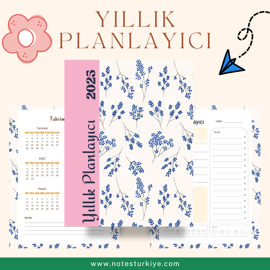 Yıllık Planlayıcı 2025 Mavi Çiçekli